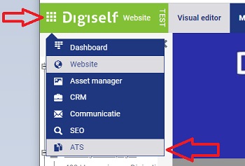 Klik linksboven in uw scherm op het icoon met de 9 puntjes. Een submenu opent, waarin - afhankelijk van uw rol - een link naar het ATS is opgenomen.