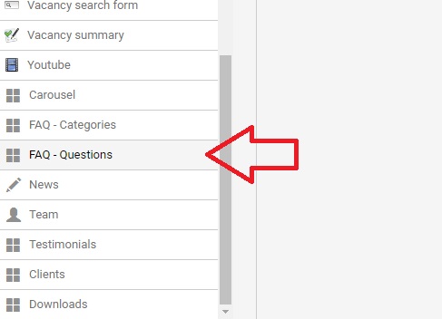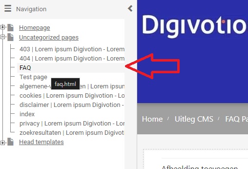In het navigatie menu zoek en klik op de FAQ pagina.