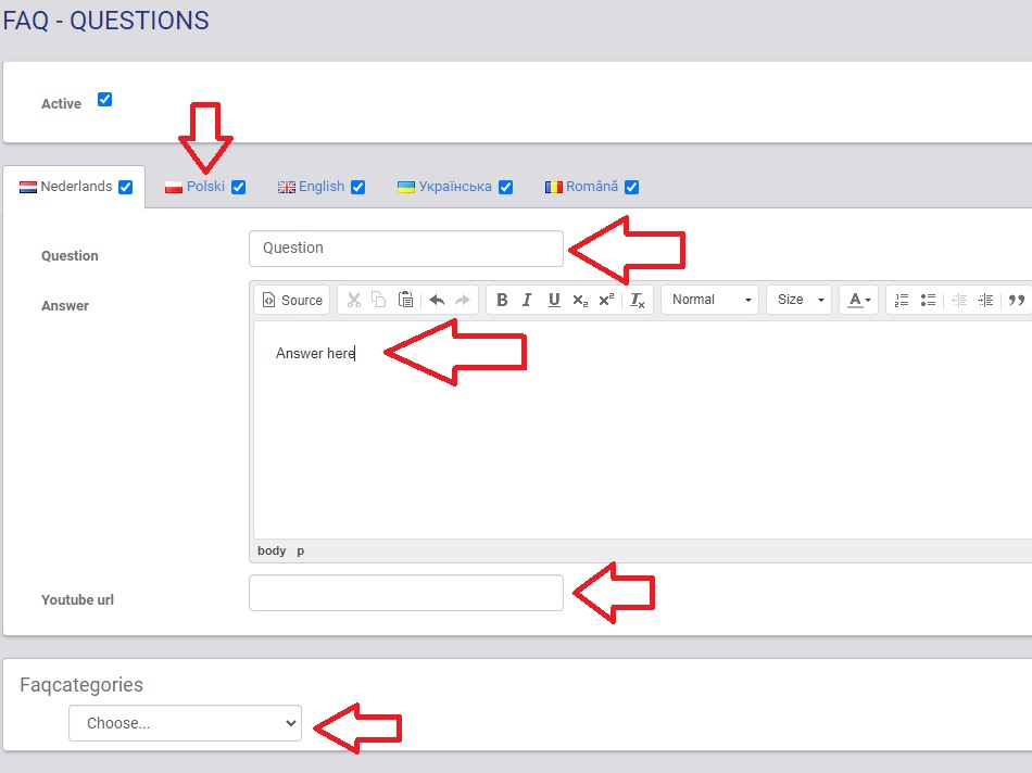 FAQ pagina/vraag aanmaken