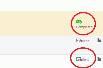 Direct na het verzenden van de mail zal de enveloppe wit zijn met het woord 'sent' ernaast. Als de intake compleet is zal het groen worden met het woord 'Completed'.