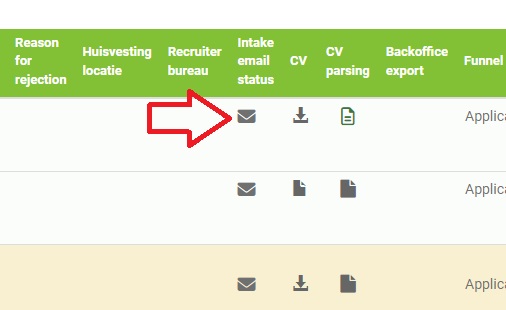 U kunt nu de kandidaat uitnodigen voor een intake gesprek door bij Intake email status op de enveloppe te klikken.