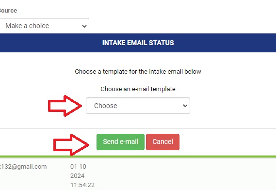 Er verschijnt een pop-up. Kies je template voor de e-mail en klik daarna op 'Send e-mail'.