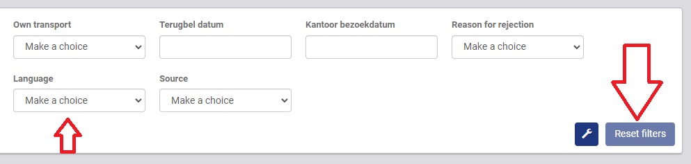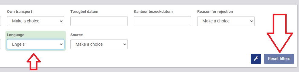 Je kan de filters leegmaken door op 'Reset filters' te klikken.