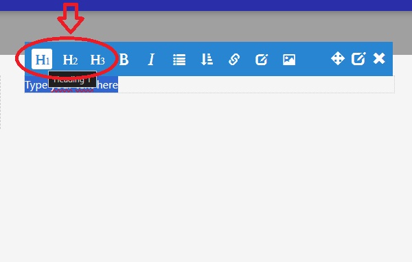 Selecteer het stukje tekst dat u als kopje wilt gebruiken en klik rechts boven op één van de header opties.