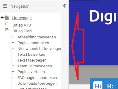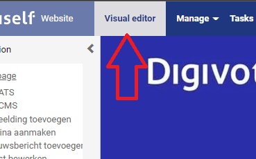 U komt meestal in het Visual Editor terecht. Zit u in een ander deel van het CMS, dan kunt u via het hoofdmenu naar de visual editor.