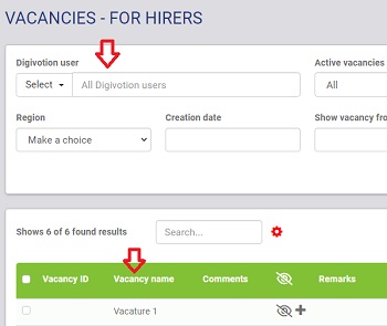 U kunt op een rij van een bepaalde vacature klikken om de vacature te bewerken.