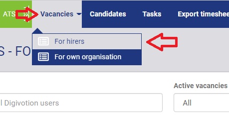 U komt meestal in het vacature overzicht terecht. Zit u in een ander deel van het ATS, dan kunt u via het hoofdmenu naar de vacatures.