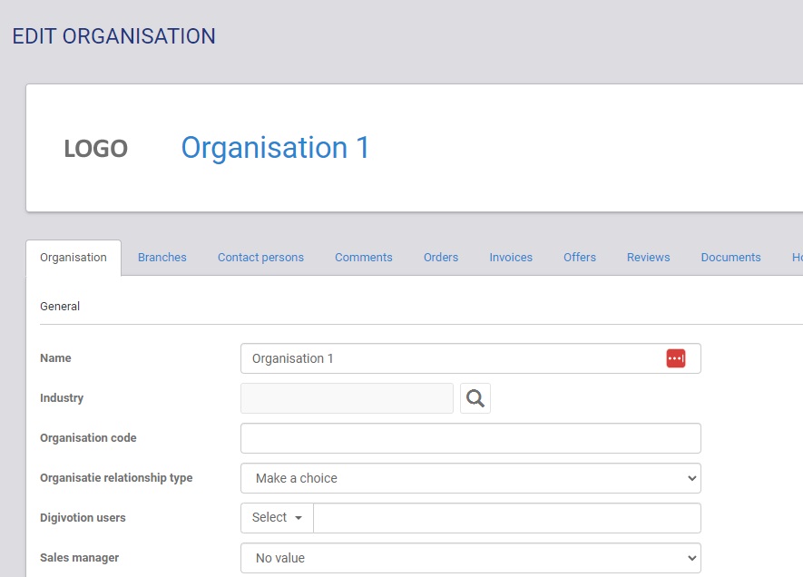 - Tabs als Organisation, Branches, Contact Persons etc.