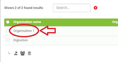 In de tabel met het organisatie overzicht ziet u uw nieuwe organisatie.