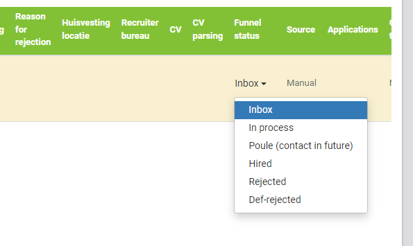 Om de status van een kandidaat aan te passen gaat u onderin naar het tabel met de kandidaten en verandert u rechts de 'Funnel status'.